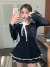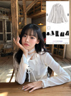 首元に付属のレースタイを添えれば、さらに甘めなスタイリングの完成。