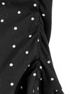 ウエスト部分は両サイドにギャザーを寄せてフィットさせ、切替から裾にかけて自然に広がるフレアシルエットがスタイルアップを後押し。