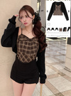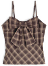 チェック柄のキャミソールとボレロがセットになったアンサンブルアイテム。フロントにあしらったビッグリボンにキュンとするガーリーなキャミソール。