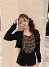 チェック柄リボンキャミソール×ボレロアンサンブルの商品詳細情報のページです。