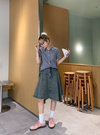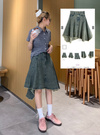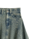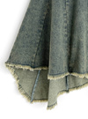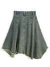 アシンメトリーなヘムがエッジの効いたスタイリングにぴったりのデニムスカート。ヴィンテージライクな色味や加工感が、ボーホースタイルにぴったり。