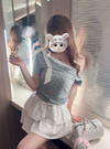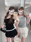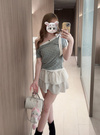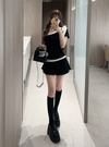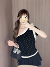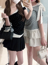 ドット柄レイヤード風ワンショルダーリボントップスの商品詳細情報のページです。