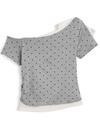 柔らかなカットソー素材にドット柄をのせたワンショルダートップス。重ね着風のディテールが今っぽく、こなれ感のある着こなしを叶える。