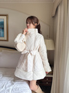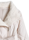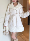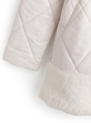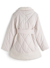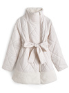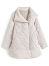 キルティングデザインにエコファードッキングが華やかな印象を与えるコート。中綿をふんだんに使用しているので、一枚羽織るだけで暖かい着心地。