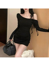 ワンショルダーリボンサイドギャザーミニワンピースの商品詳細情報のページです。