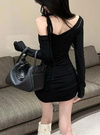 伸びやかなカットソー素材を用いて、しなやかに身体に馴染むワンピース。アシンメトリーなワンショルダーがデコルテを美しく引き立てる。