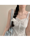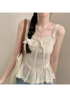 爽やかなパンチングレースで仕立てたキャミは、胸元にリボンをトッピングしガーリーな印象をプラス。