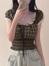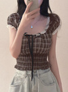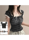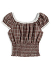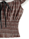 チェック柄フリルリボンシャーリングブラウスの商品詳細情報のページです。
