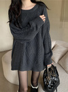 シーズンムードたっぷりなあたたかみのあるケーブル編みニットワンピース。立体的な編地は、シンプルながらも存在感があり着映えする。