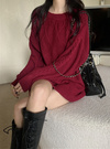クルーネックケーブル編みニットミニワンピースの商品詳細情報のページです。