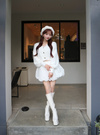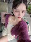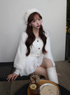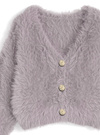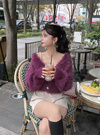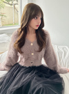 ふわふわのシャギーニットで仕立てた上品なショートカーディガン。ニュアンスのある表面感のゴールドボタンで華やかな印象をプラス。