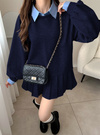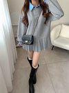 襟付きシャツレイヤード風プリーツワンピースの商品詳細情報のページです。