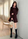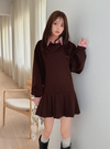 ダンボールニット生地を使用した、なめらかな着心地のミニワンピース。レイヤード風の襟は取り外せ、雰囲気を変えられる嬉しい仕様。