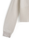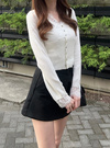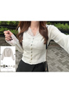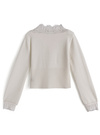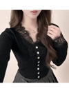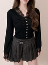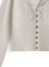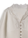 繊細なレース使いが上品でエレガントな雰囲気を漂わせる。シェルボタンが動く度に輝きを放ち、華やかな印象をプラス。