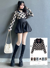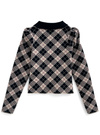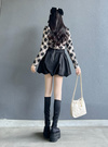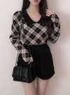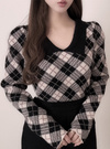 モダンクラシックなアーガイル柄でとことんレディに仕上げたニットトップス。丸みのあるパワーショルダーで肩周りをふんわりと引き立て、都会的な印象を与える。