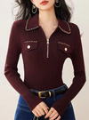 ゴールドチェーンハーフジップリブニットトップスの商品詳細情報のページです。