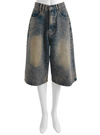 ヴィンテージ感のあるデニム生地を使用した、トレンドライクなハーフパンツ。ローウエストで履けるデザインなので、ウエストをチラ見せした着こなしも◎。