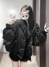 ゆったりとしたルーズシルエットで、リラクシーに着られるモンスターコート。スタンドカラーがスタイリッシュな雰囲気を演出してくれる。