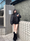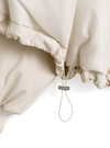 裾のドロスト部分を絞れば、シルエットにアレンジを加えられる。