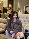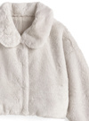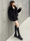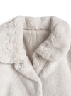 滑らかな手触りのエコファーで仕立てた女性らしさ漂うコート。大きめの襟デザインがアクセントになり、顔まわりを華やかに印象付ける。