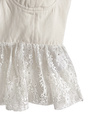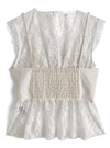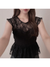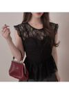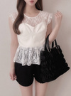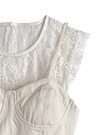 レースとコルセットデザインのレイヤードコーデが即完成するドッキングトップス。透け感のあるフラワーレースが軽やかな印象。