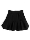 きれいなフレアシルエットのスカートパンツは、中が見える心配がなく安心感◎。