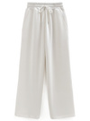 ワイドなフォルムのパンツはウエストゴム仕様で、ストレスフリーな着用感。