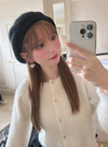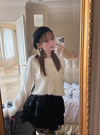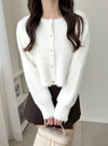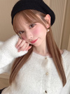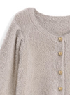ふわふわなシャギー素材が、優しい温もり感じさせるニットカーディガン。フロントにはハート型ボタンをあしらい、ガーリームードをメイク。