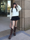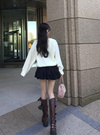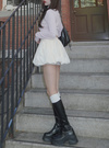 ハリのある素材を使用し、立体的なフォルムにこだわったミニスカート。ボリュームたっぷりなバルーンシルエットが女性らしさを引き立てる。