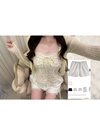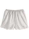 フラワーレース生地で仕立てたインナーショートパンツ。裾にも繊細なレースフリルをあしらいフェミニンなデザインに仕上げた。