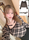 チェック柄パールビットニットトップスの商品詳細情報のページです。