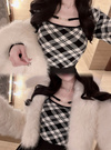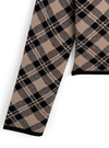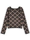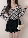 バイアス使いのチェック柄生地が存在感たっぷりなニットトップス。胸元にあしらったパールのビットパーツも華やかさをプラスするポイント。