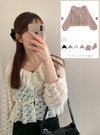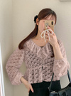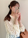 若干立体感のあるリボン柄の総レース素材を用いた、女性らしさ際立つブラウス。Vに大きく開いたネックラインがデコルテを美しく演出。