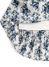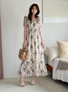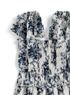 なめらかな素材にフラワープリントをのせた、エレガントで品のあるワンピース。フリルのショルダーリボンが甘さを添えるアクセントに。