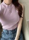 ロゴ刺繍ノースリーブニットトップスの商品詳細情報のページです。