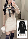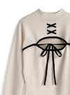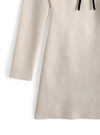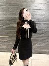 しっとりとした滑らかな質感で優しい着心地のニットワンピース。デコルテをざっくりと開けて、配色のパイピングやレースアップ風のデザインをあしらいフェミニンに仕上げた。