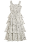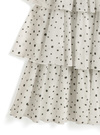 ランダムドット柄が上品で大人フェミニンな印象を与えるキャミワンピース。ボリュームたっぷりのティアードフリルが、歩くたびにひらひらと揺れて魅力的。