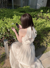 バックネックにあしらったリボンも華やかさを添えるポイント。