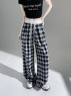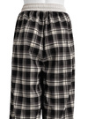 さらりとした薄手のチェック柄生地で仕立てたワイドパンツ。ウエスト部分は異素材を使用し、紐にはレースを重ねることでさり気なくガーリー要素を追加。