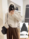 柔らかく着心地の良いリブニット素材のパーカーが登場。フード付きのデザインがカジュアルな雰囲気を演出するポイント。