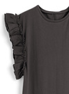 シンプルなデザインながらも袖のダブルフリルで大人っぽい華やかさを添えたワンピース。ストンとしたストレートシルエットなので自然に体型カバーが叶う。