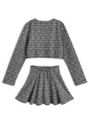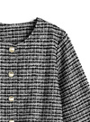 クラシカルなカットツイード素材を使用した、ジャケットとスカートのセットアップ。ベーシックなラウンドネックにフロントのゴールドボタンが、上品でこなれ感のあるジャケット。