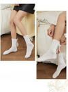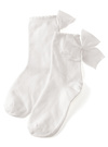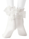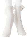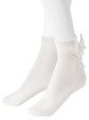 バックに立体的なオーガンジーリボンをあしらったキュートなソックス。履き口のさり気ないスカラップデザインも甘さを添えるポイント。