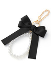 バッグにつけるだけで上品な愛らしさがプラスされるチャーム。シックなリボンとパールストラップはバッグのテイストを選ばずにつけやすい。
