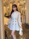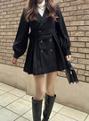 軽やかなプリーツが動くたびに揺れ、華やかなシルエットを作るコート。ダブルブレストデザインがクラシカルなテイストを引き立てるポイント。