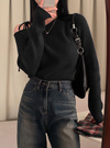肌馴染みの良い柔らかなリブ素材で仕立てられたニットトップス。体に程よくフィットし、スッキリとした美しいラインを引き立てる。