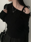 ワンショルダーリボンリブニットトップスの商品詳細情報のページです。