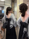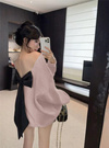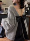 大胆なバックオープンでヘルシーな肌見せを叶え、抜け感のあるコーデへと導く。エレガントに揺れる大きなバックリボンが後ろ姿に華やぎを添える。