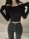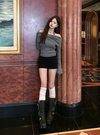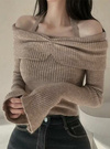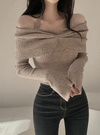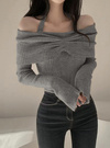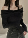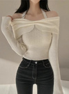 大胆なオフショルとホルターネックの組み合わせで大人の色気を香らせる。程よく厚みのあるリブニット素材は快適なフィット感を提供してくれる。