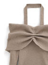 中央にギャザーを効かせたリボンのような独自のデザインが着こなしの主役にぴったり。